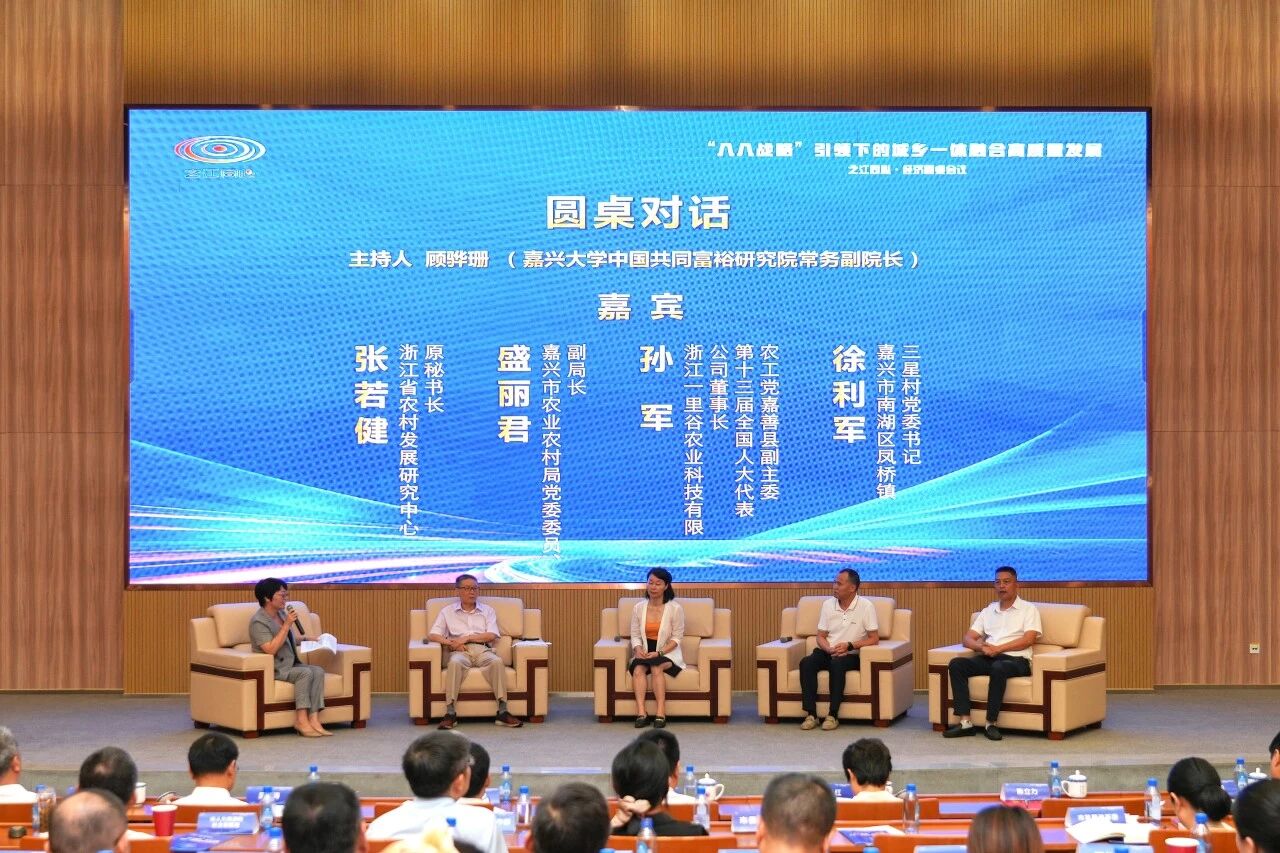 本次圆桌会议由农工党浙江省委会、中共嘉兴市委统战部、嘉兴大学主办,农工党嘉兴市委会、嘉兴大学党委统战部、嘉兴大学中国共同富裕研究院共同承办,旨在汇聚政府、学界、行业、智库各界代表的思想力量,为推动浙江城乡一体融合高质量发展、助力浙江高质量发展建设共同富裕示范区提供坚实智力支撑。