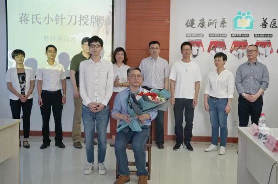 2019年5月,“蒋氏小针刀”工作站授牌,蒋云甫(前排右)收青年医生陆江南为徒。