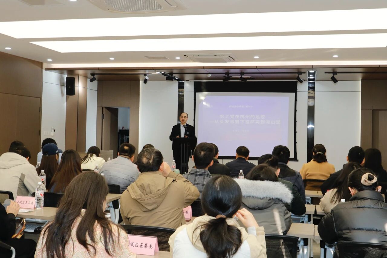 在濮家社区党群服务中心,李祖胜以《农工党在杭州的足迹——从头发巷到下菩萨再到湖山堂》为题,系统梳理了农工党杭州市地方组织从建立、斗争到发展的完整脉络,生动再现农工党与中国共产党风雨同舟、肝胆相照的奋斗历程,展现新时代农工党地方组织继往开来、再建新功的坚定决心。