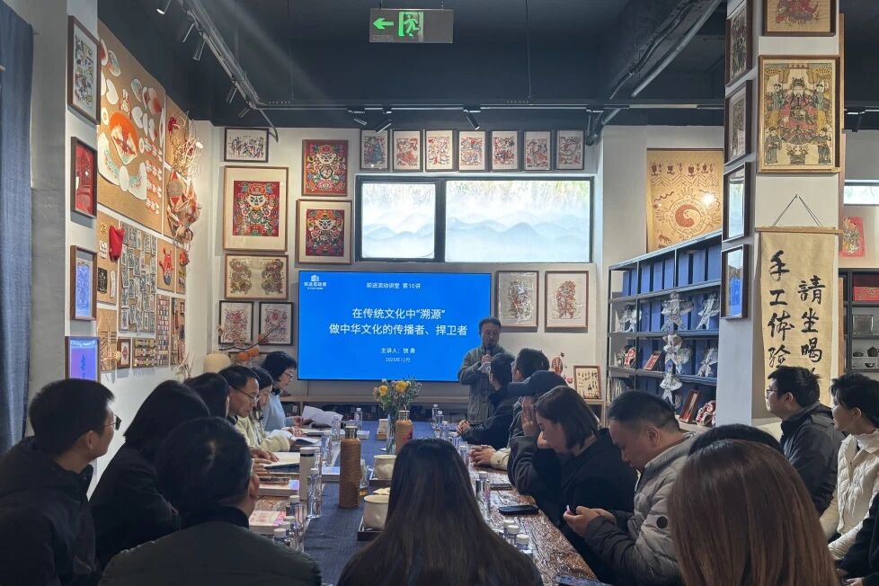 在浙江省非遗美学生活馆“王的手创”,饶勇以《在传统文化中“溯源”——做中华文化的传播者、捍卫者》为题,分享通过数字赋能、设计转化推动非遗活态传承的创新探索,以及通过文化帮扶助力乡村振兴的履职实践,让学员们深刻感受到传统手工艺在现代社会中焕发出新的活力。
