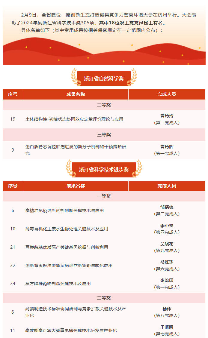 喜报!18位农工党党员荣获2024年度浙江省科学技术奖
